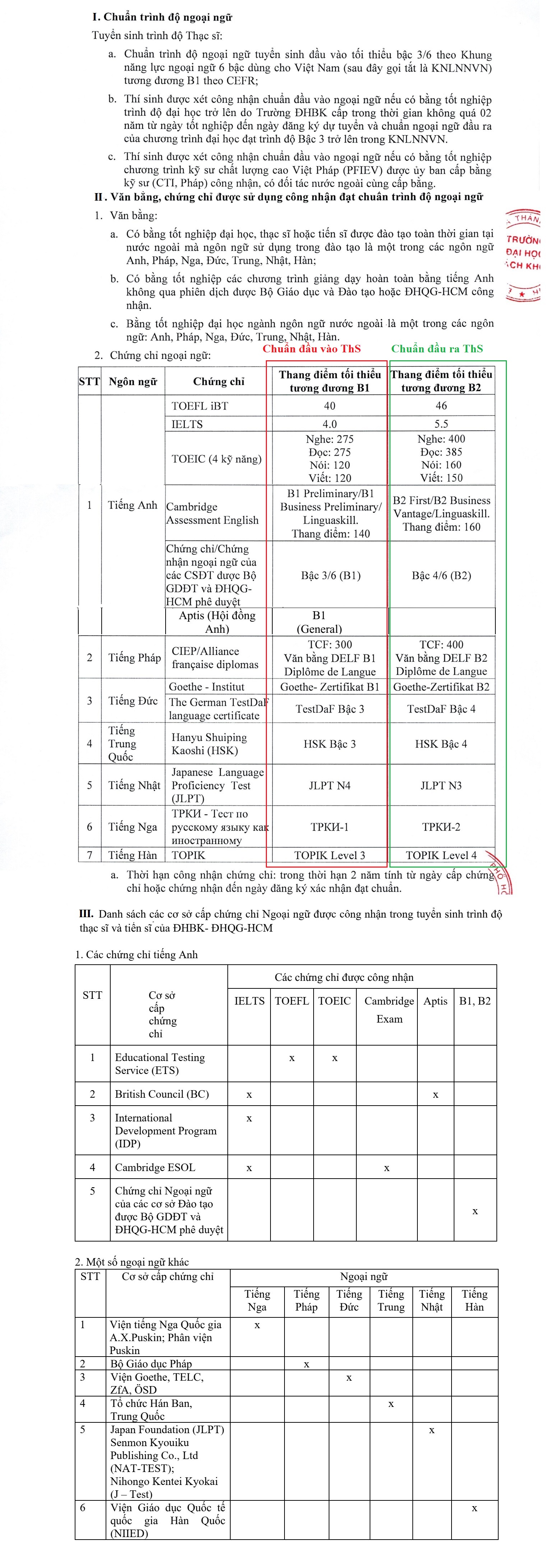 – Văn bằng, chứng chỉ, chứng nhận ngoại ngữ được công nhận đạt chuẩn và các cơ sở cấp chứng chỉ Ngoại ngữ được công nhận trong tuyển sinh xem file đính kèm.